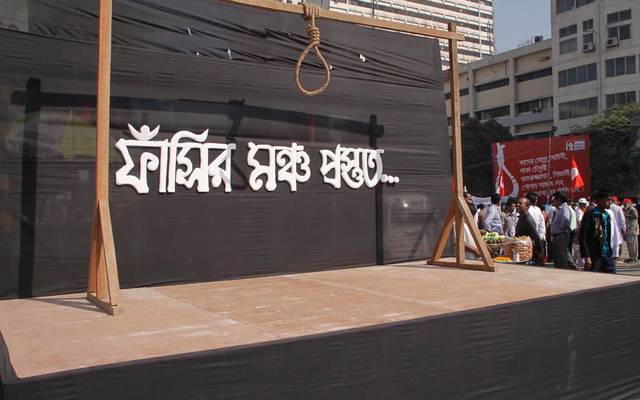 A ‘gallows’ has been constructed at the roundabout and more and more people are pouring in to witness mock executions, said bdnews24.com correspondents from Shahbagh.