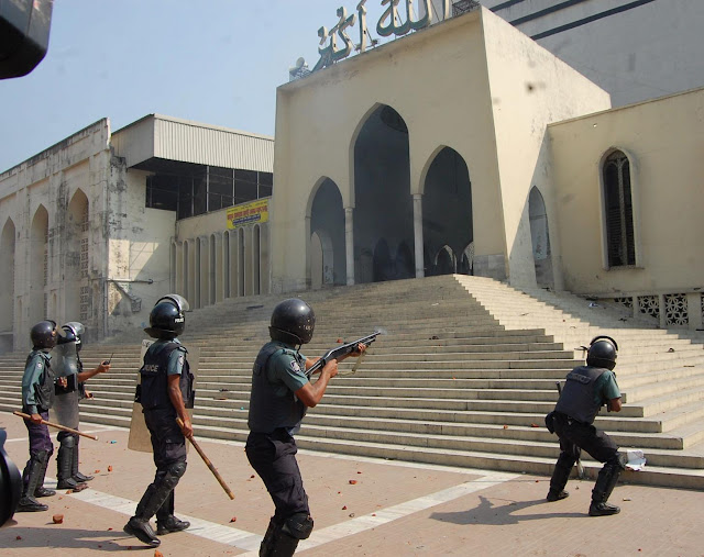 In Dhaka, the Daily Star reports that clashes took place at the premises of Baitul Mukarram National Mosque, Jatiya Press Club, and Paltan, Katabon Mosque, Dainik Bangla intersection and Shilpakala Academy areas. Police later detained more than 100 people taking them for Jamaat and Shibir men from the spots.