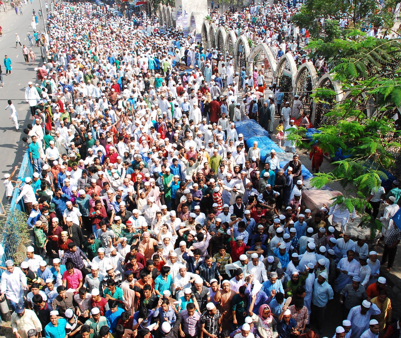 Police and pro-government media have alleged that Jamaat-e-Islami and Shibir supporters carried out acts of vandalism from within the ranks of protesters. The protesters today were mostly labelled negatively by media. Daily Star in its reports used ‘marauding’ activists and in one place in its report talked about bigots, saying, “around 500 bigots brought out a procession from Lalbagh Shahi Mosque”. Various TV reporters such as those of Ekattor TV termed the protesters as ‘jongi’, i.e. terrorists. Others termed them as fundamentalists, radical Islamists and religious zealots. However, activists from within the demonstrations have refuted any such claims, saying that a mass participation from all strata of society had been in effect. It included, but was not limited to, supporters of Jamaat-Shibir, supporters of the main opposition Bangladesh Nationalist Party and other parties of the 18 party grand Alliance, even members of the Tabligh Jamaat along with supporters of the Islamic parties who had called for the demonstrations. The presence and support of a large number of general Islam loving people was something the media couldn’t hide.