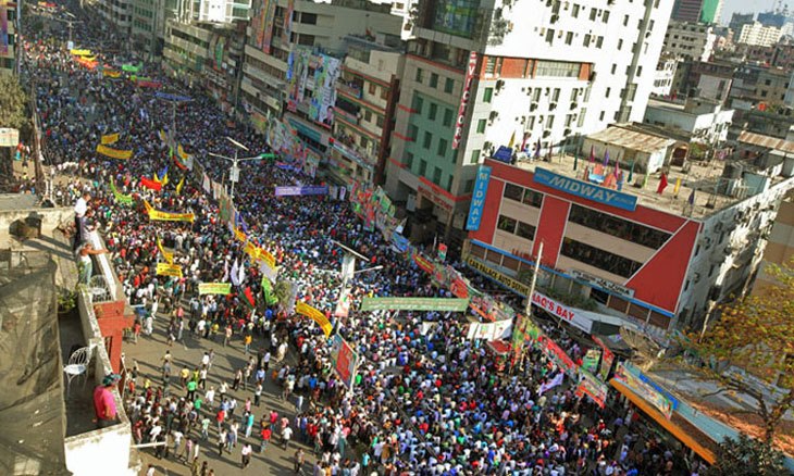 | A BNP procession in Dhaka to protest the genocide of 28th February |