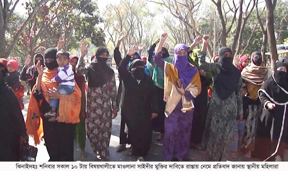 | Protest by women activists at Jhenaidah at about 10 am to protest Sayedee verdict |
