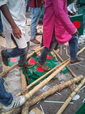 The blatant lack of management in terms of maintaining order failed similarly, as all semblance of orderliness failed miserably down the track of both space and time. Attendees of the program informed of chaos both while entering and exiting the grounds and on the ground itself. At the time the main singing event transpired, many were seen sitting due to exhaustion while others were seen waving flags without any clue. The claim by organizers that there was one army personnel for every 50 participants turned out to be void as clusters of officers meant to be looking after order were seen chitchatting at random clusters instead. Endless replicas of the Bangladesh national flag, meant to be treated with respect, were seen strewn around as people, mired in exhaustion from the heat and exhaustion, were forced to either sit or walk on piles of national flags fallen on the ground, a legacy of the widespread mismanagement already in place.
