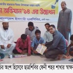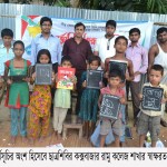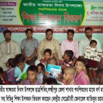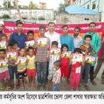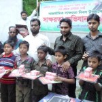 - Distribution of books, notes, pencils, chalk-dusters, boards and ‘Bornomala’ (Bangla alphabet) books among street children, working class illiterate people among others