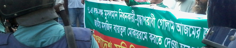 I was walking at full speed towards Baitul Mokarram at about 12:48 pm to attend the janaza of Professor Ghulam Azam when this huge anti Ghulam Ghulam Azam presence beside the police box situated at Paltan junction beside the Secretariat really freaked me out.