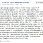 11 November, 2014 Center for Justice and Accountability (CJA) expresses grave concern over the impending execution of Mohammad Kamaruzzman, who was sentenced to death by the Bangladesh International Crimes Tribunal for his involvement in the 1971 War of Independence. Given the Tribunal’s repeated failure to uphold recognized standards of due process in proceedings before the …